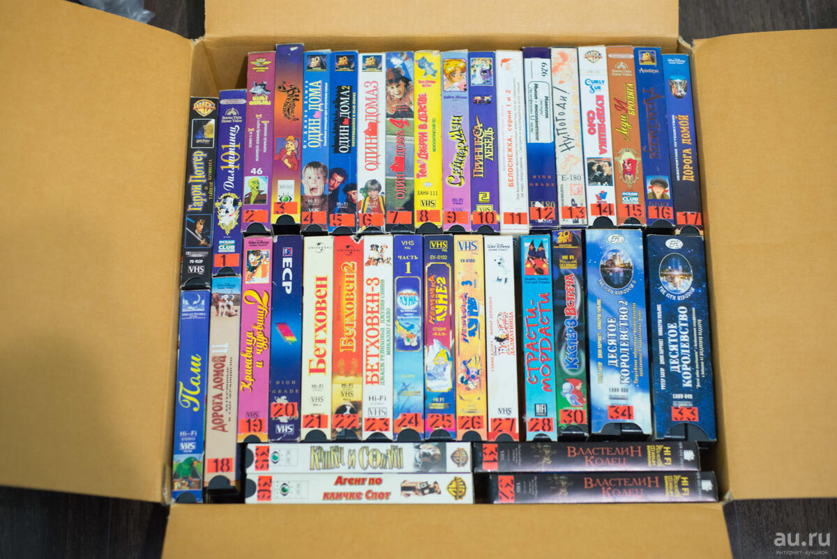 На полке у миши 6 видеокассет - фото