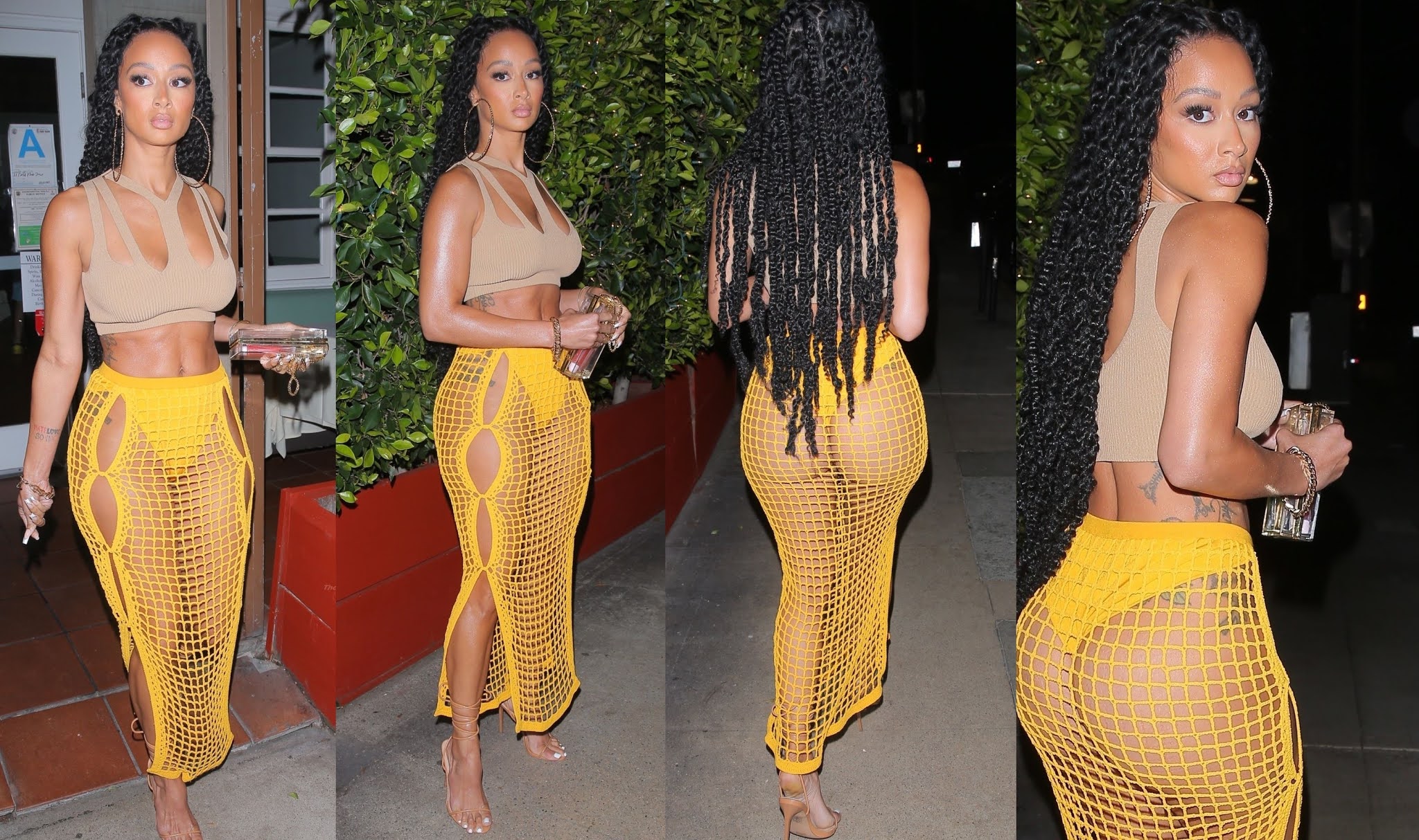 Draya Michele shows her curvy figure in a cropped top and yellow fishnet skirt i