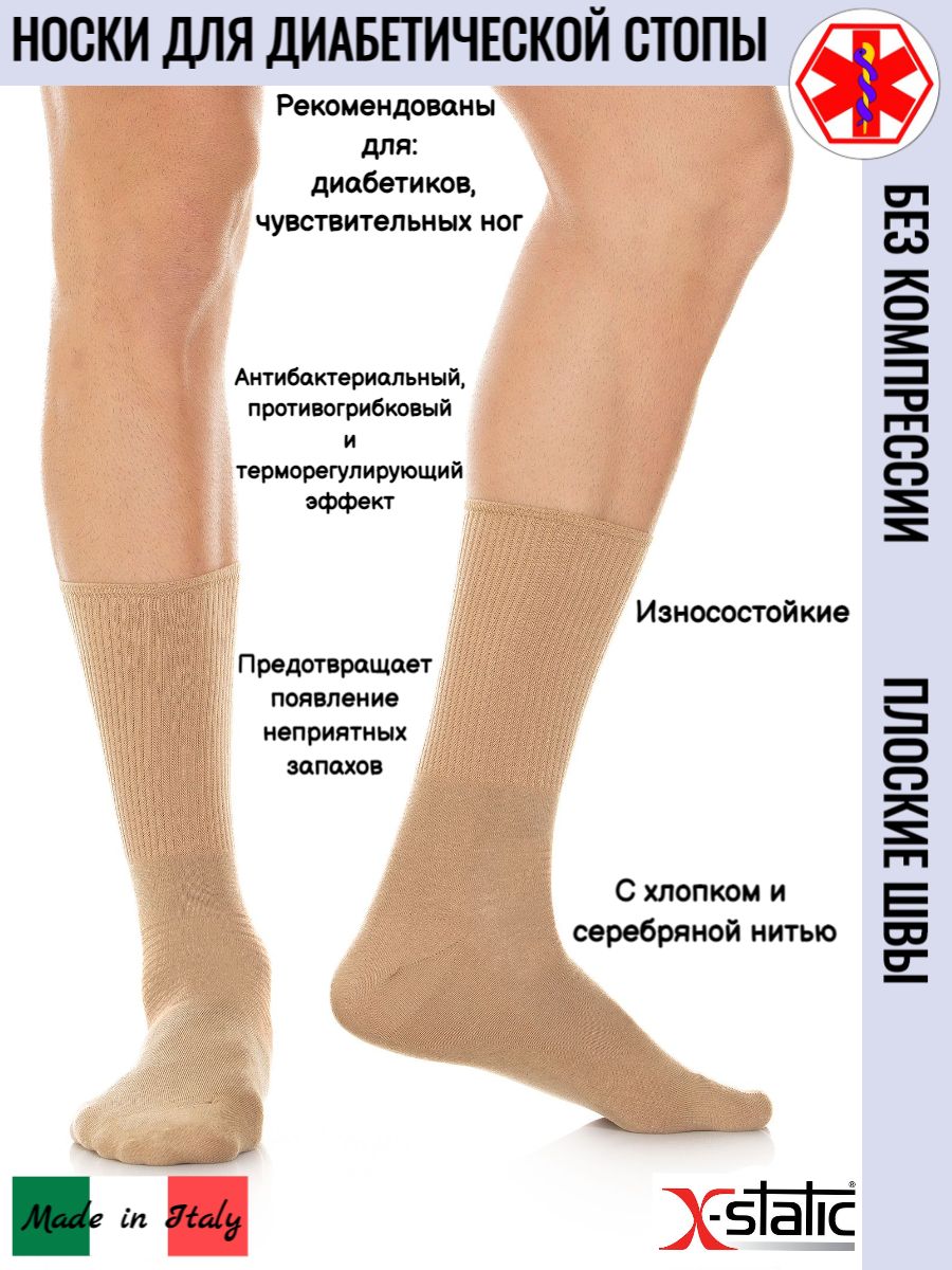 Носки для диабетической стопы DIABETIC SOCKS X-Static без компрессии с хлопком и