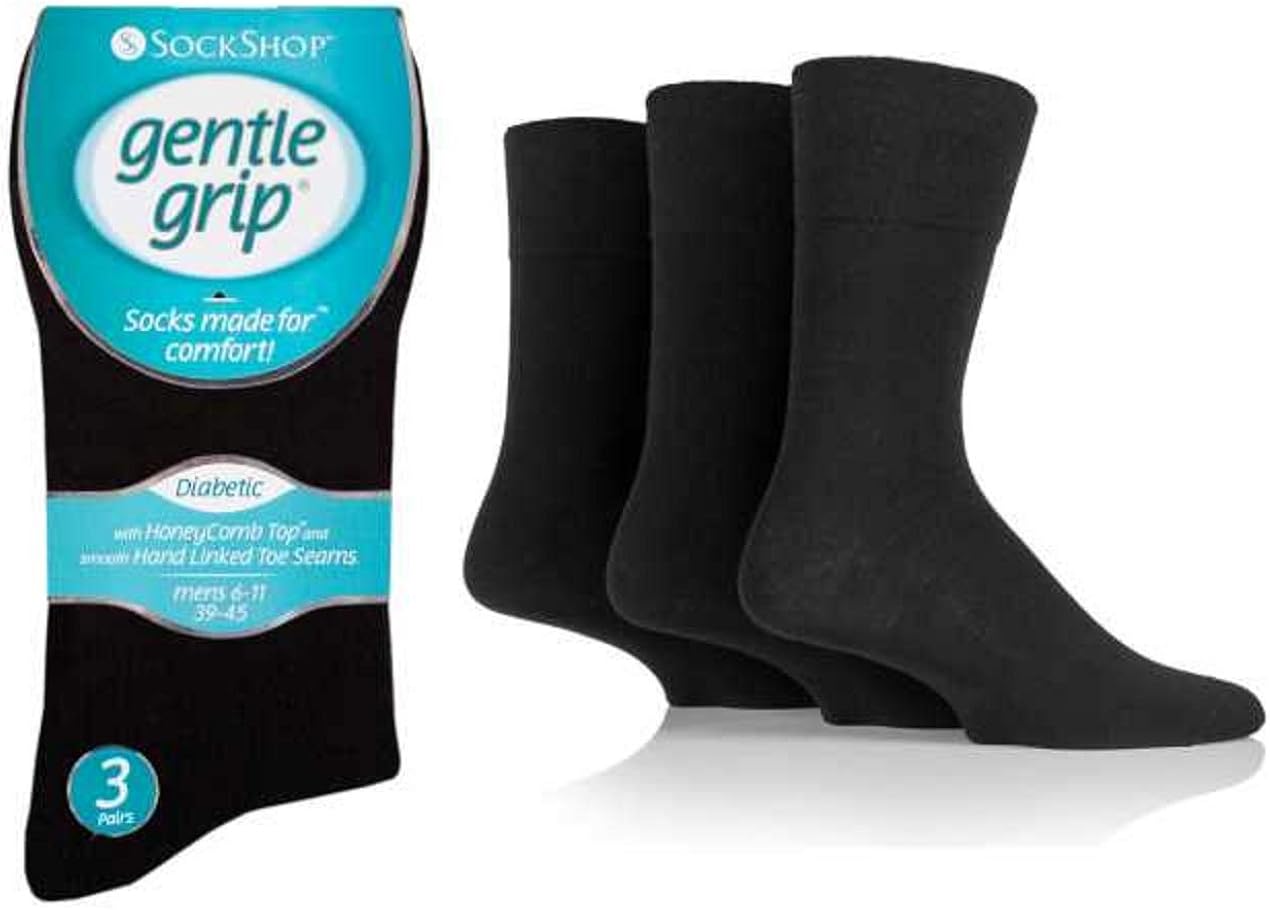 Sockshop Mens Cotton Rich Gentle Grip Diabetic Non Elastic Socks With Soft Hand