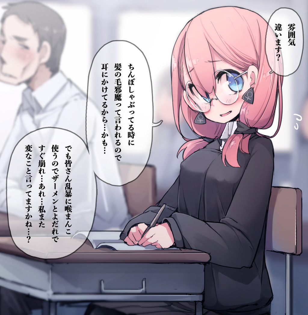 takagi seiniku, takagi (tansuke), highres, translation request, blue eyes, blush